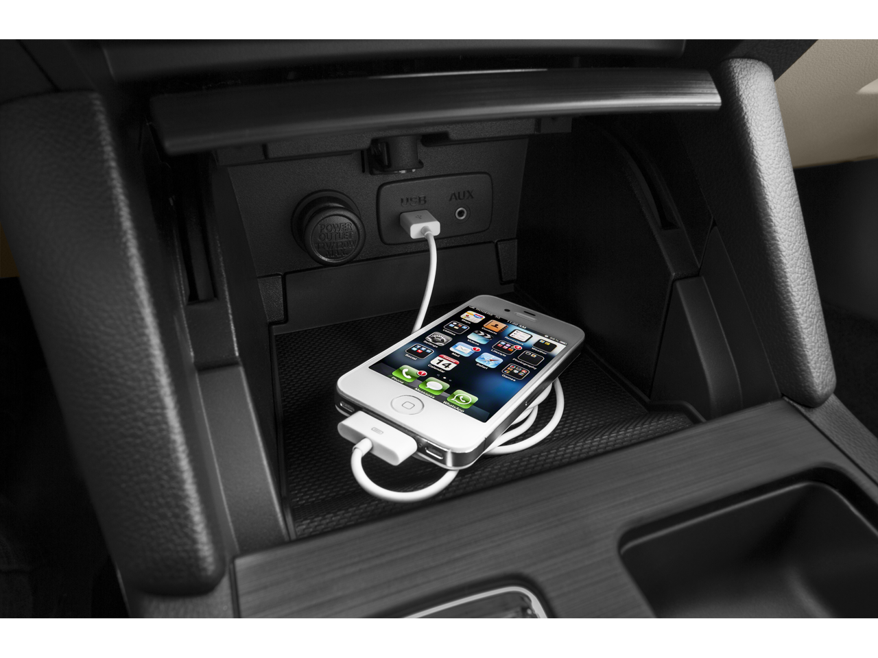 - Full Floor Console w/Covered Storage; Mini Overhead Console w/Storage and 2 12V DC Power Outlets